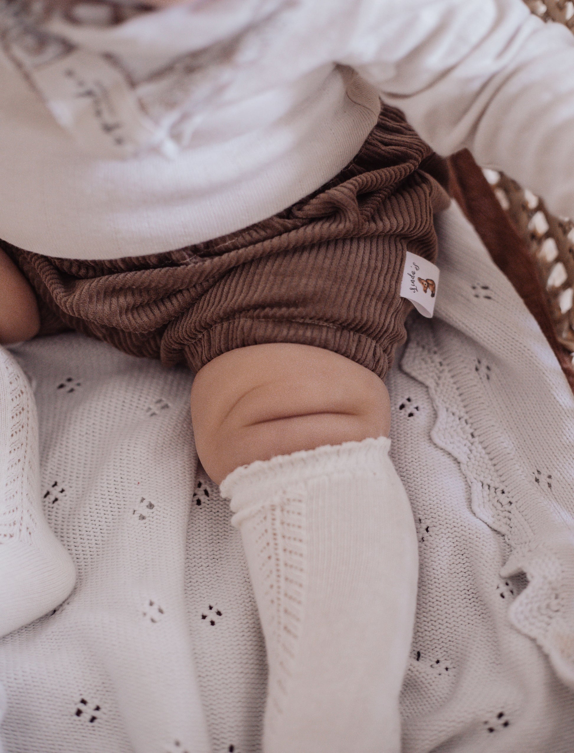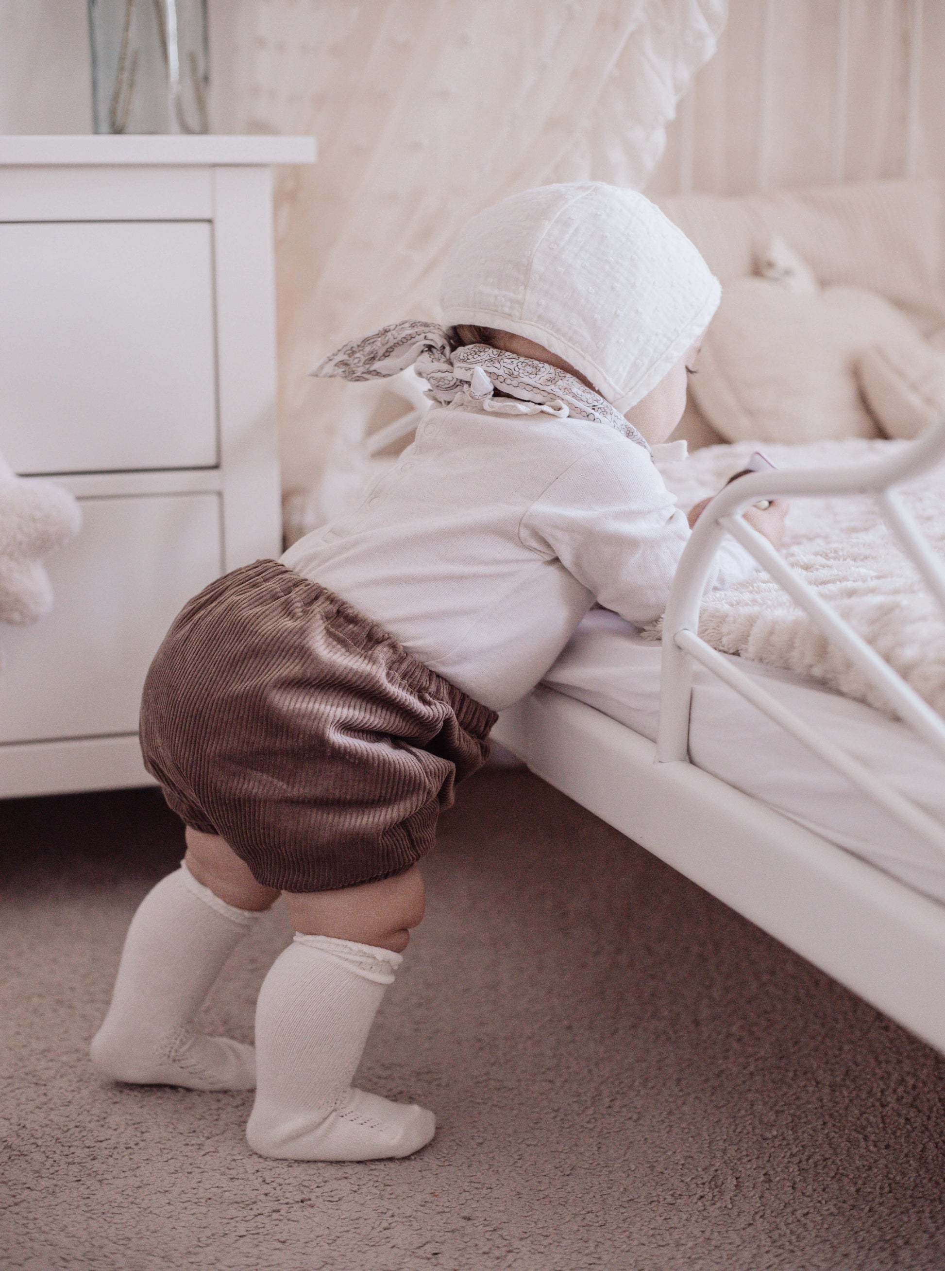 Ce joli bloomer en velours marron est une pièce incontournable pour un look doux et élégant. Confortable et pratique, il accompagne bébé aussi bien au quotidien que pour les petites occasions.