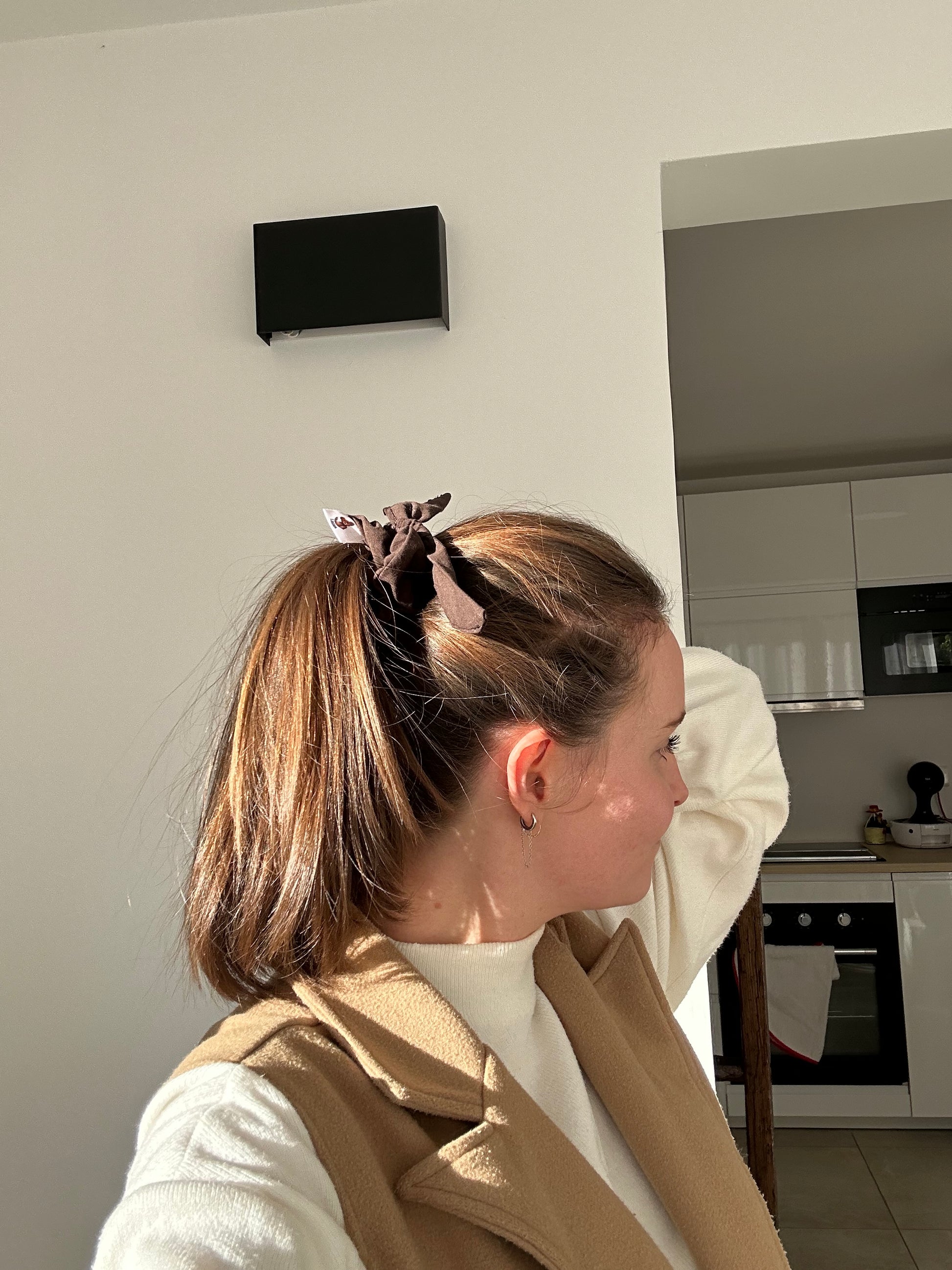 Ce chouchou en gaze de coton apporte une touche de style simple et élégante à vos coiffures.