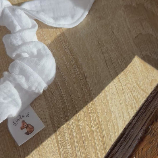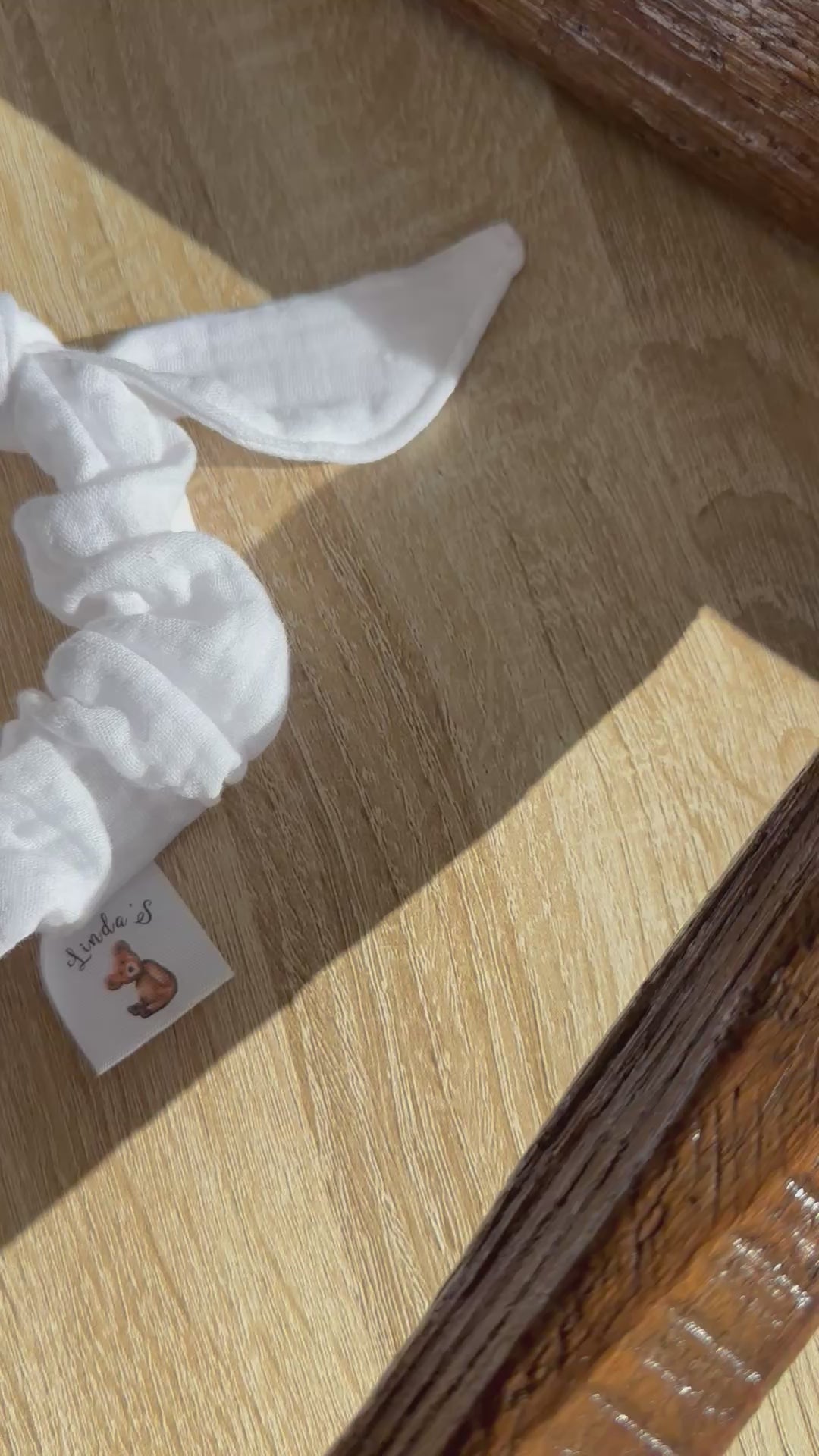 Ce chouchou en gaze de coton apporte une touche de style simple et élégante à vos coiffures.