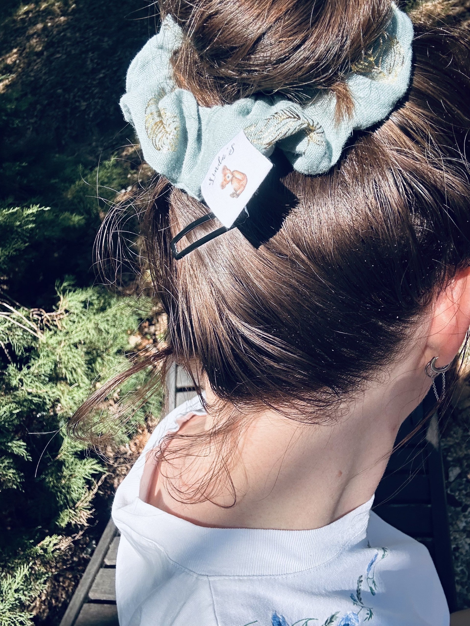 Ce chouchou en gaze de coton apporte une touche de style simple et élégante à vos coiffures.