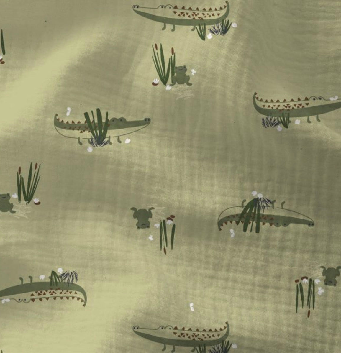 Couverture bébé en minky écru et gaze de coton vert à motif crocodiles